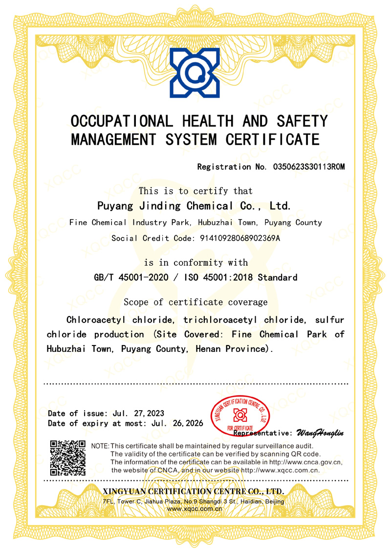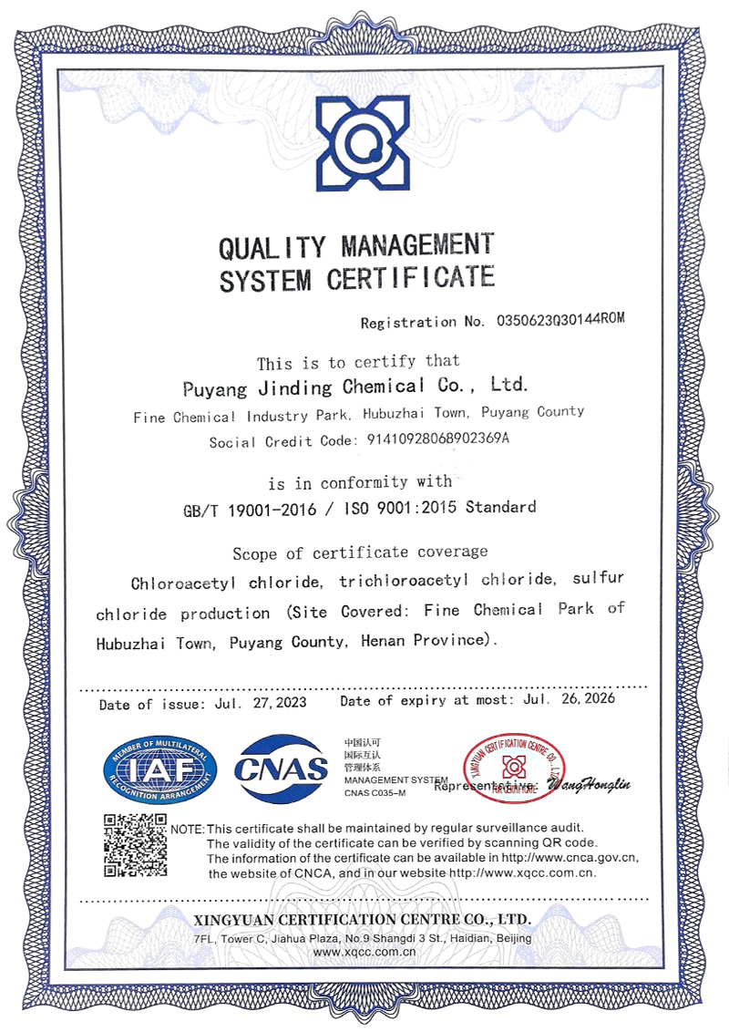 濮陽市金鼎化工有限公司所屬其他基礎(chǔ)化學(xué)原料制造,公司主要產(chǎn)品規(guī)模為:10000噸/年氯乙酰氯、10000噸/年氯乙酸、5000噸/年氯化硫、6000噸/年氯甲醚、5000噸/年三氯乙酰氯、7000噸/年氯乙酸甲酯、3000噸/年二氯乙酸甲酯,副產(chǎn)鹽酸13000噸/年。產(chǎn)品廣泛應(yīng)用于醫(yī)藥、農(nóng)藥、染料、膠劑等行業(yè)。